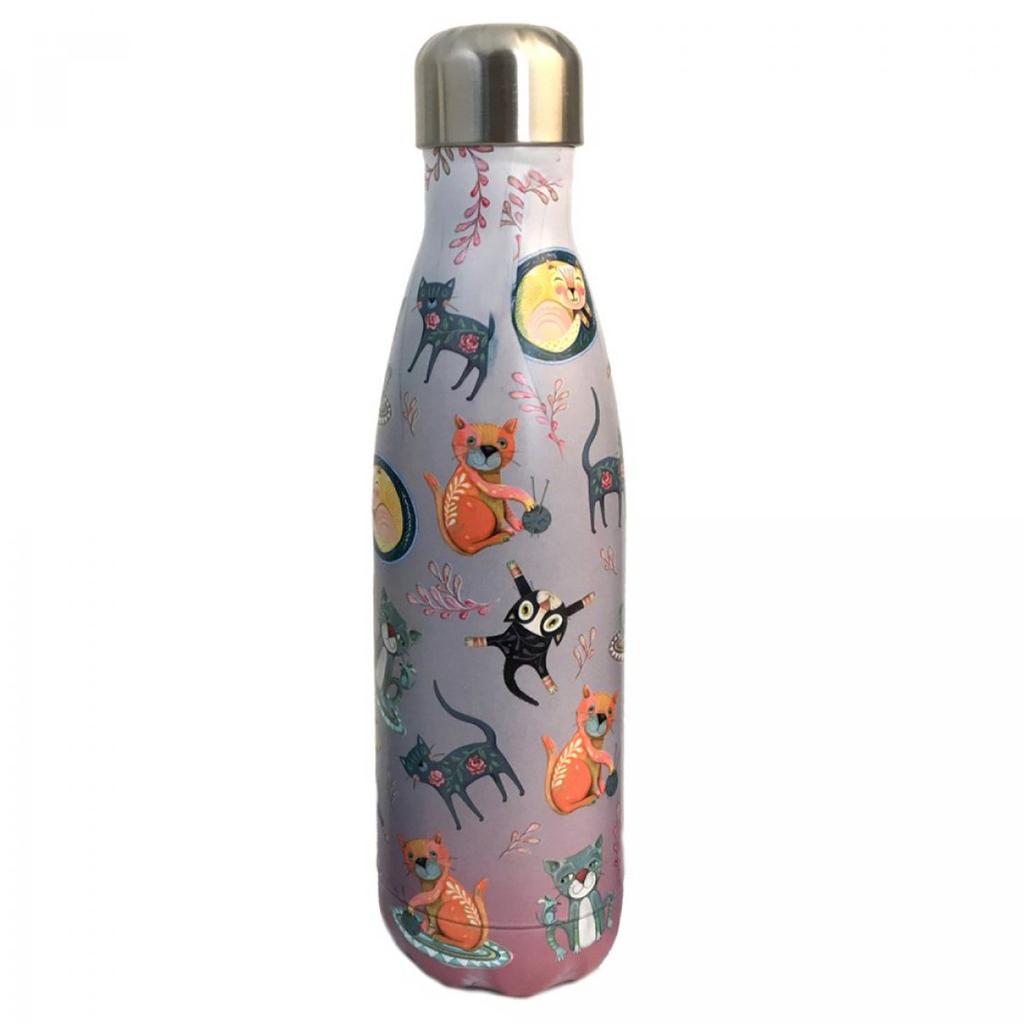Allen Designs [A1976] - 'Allen Designs' Multi-colored Grey Insulated Bottle (cats) - 25x5 Cm (500m)
