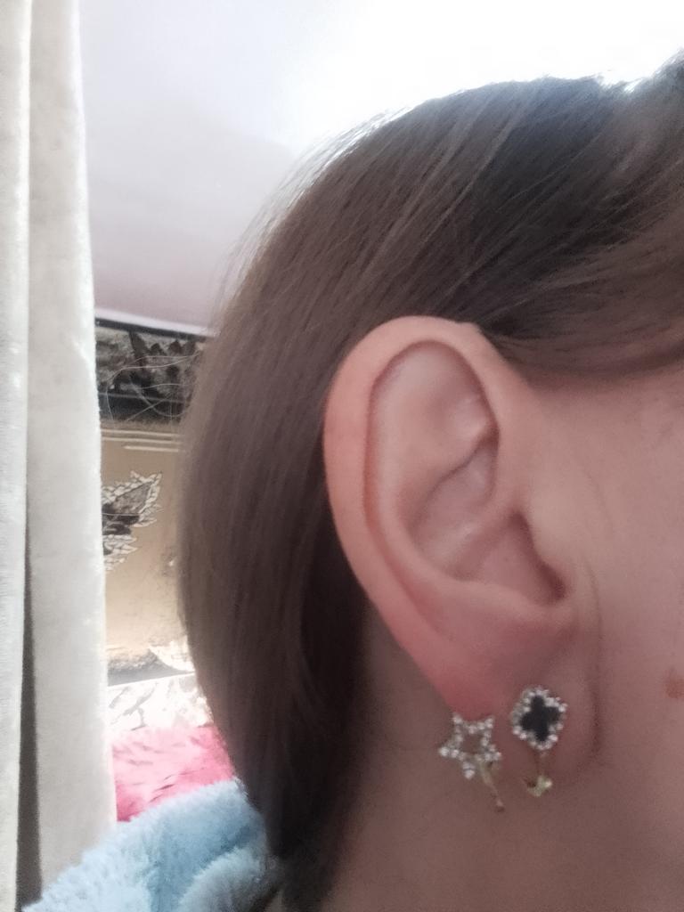 Very beautiful but poorly held on the earlobe, if the hole on top of the ear is on the cartilage, then it will be very good there, but they don’t stick on the bottom