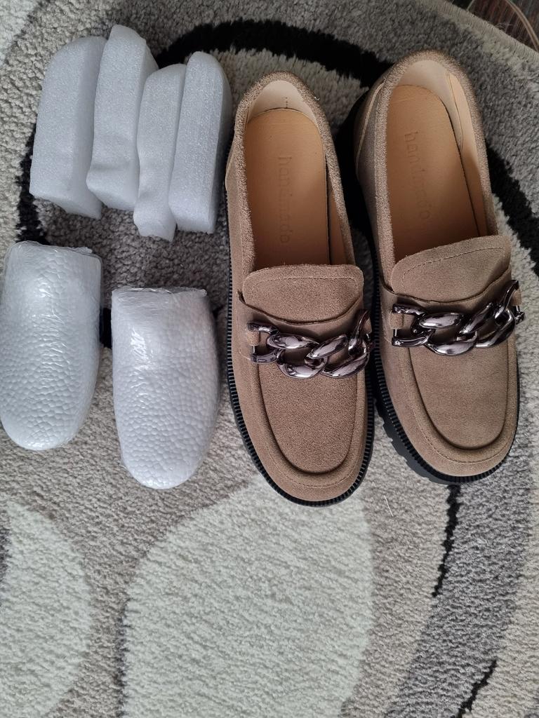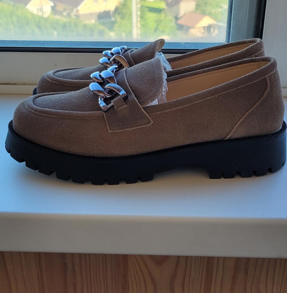 A bit tight for size 37.5. I hope they stretch. There was a strong smell from the sole, I aired them out on the balcony. But otherwise neat, soft. They are good for every day.