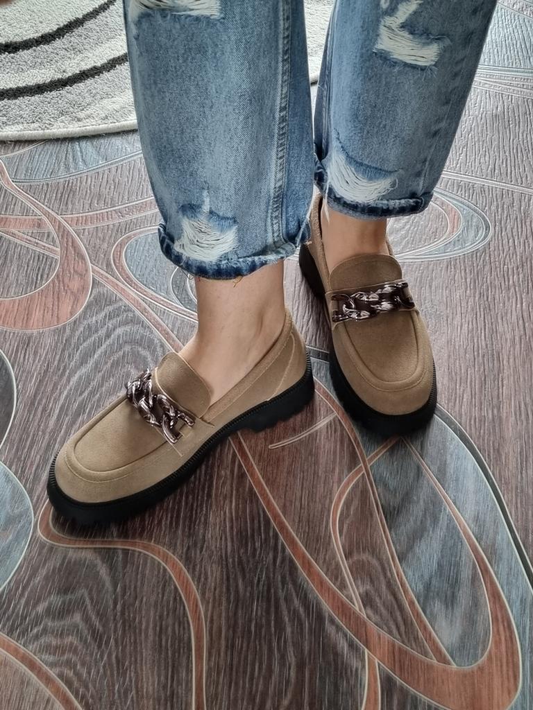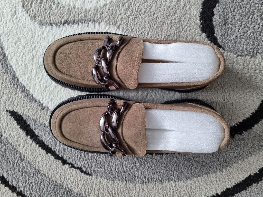 Women Loafers Suede Genuine Leather Chain British Style Women Spring Shoes Large Size Student Shoes Ladies