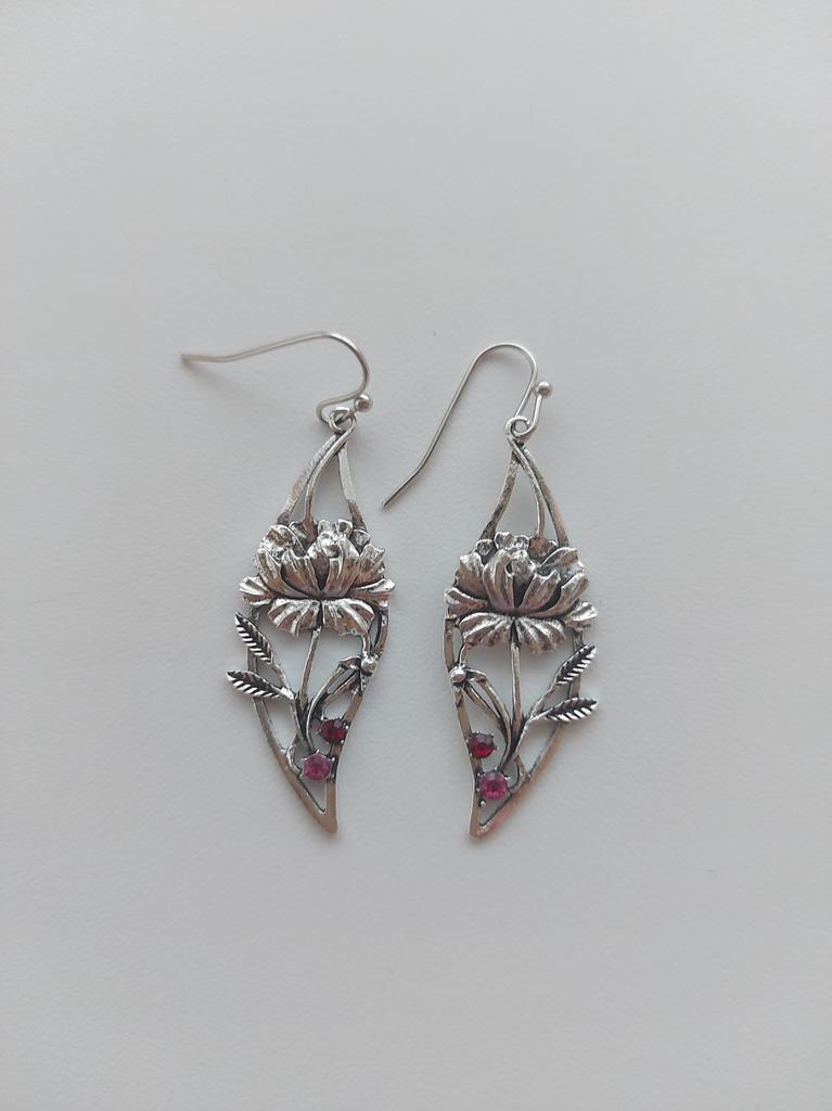 Temperament Elegant Plant Floral Earrings Women's Fashion Trend Antique Silver Chinese Style Peony Earrings