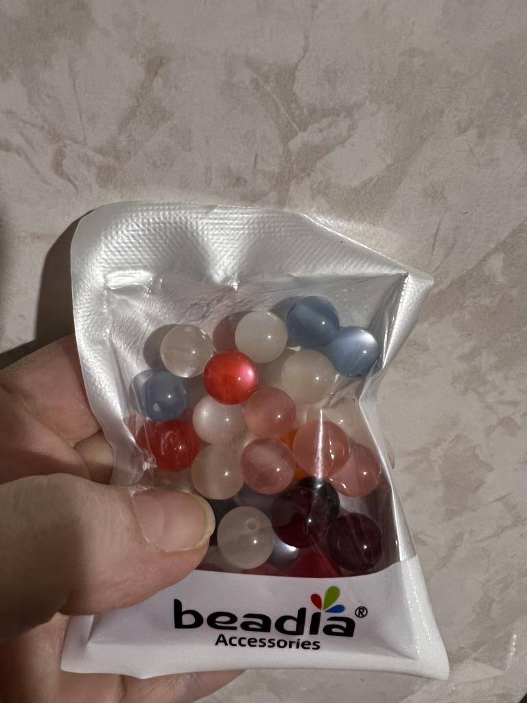 Nice beads, size 10 mm, but they look smaller, I specifically noticed - 10 mm 😄 Thanks everyone