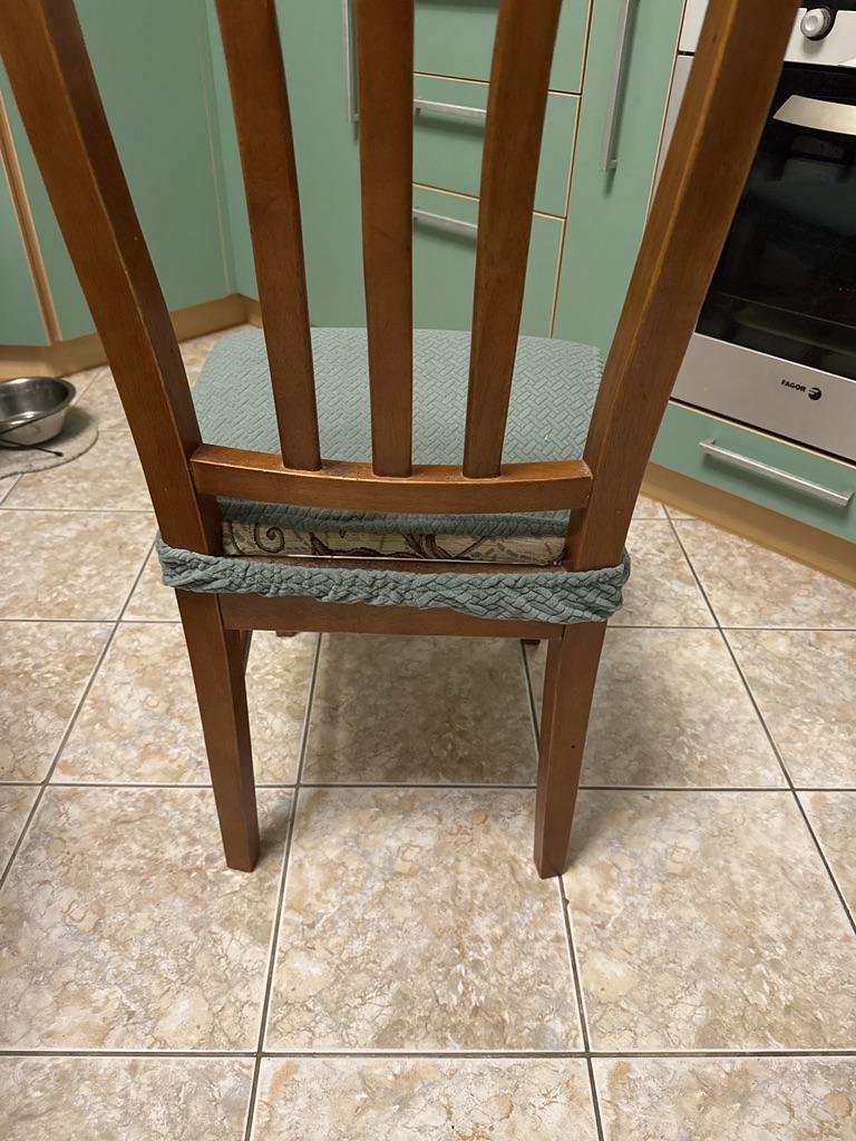 The fabric is nice, it looks nice, but the design seemed unsuccessful to me. There is a strip of adhesion to the back of the chair. I haven't figured out how to fix it yet.