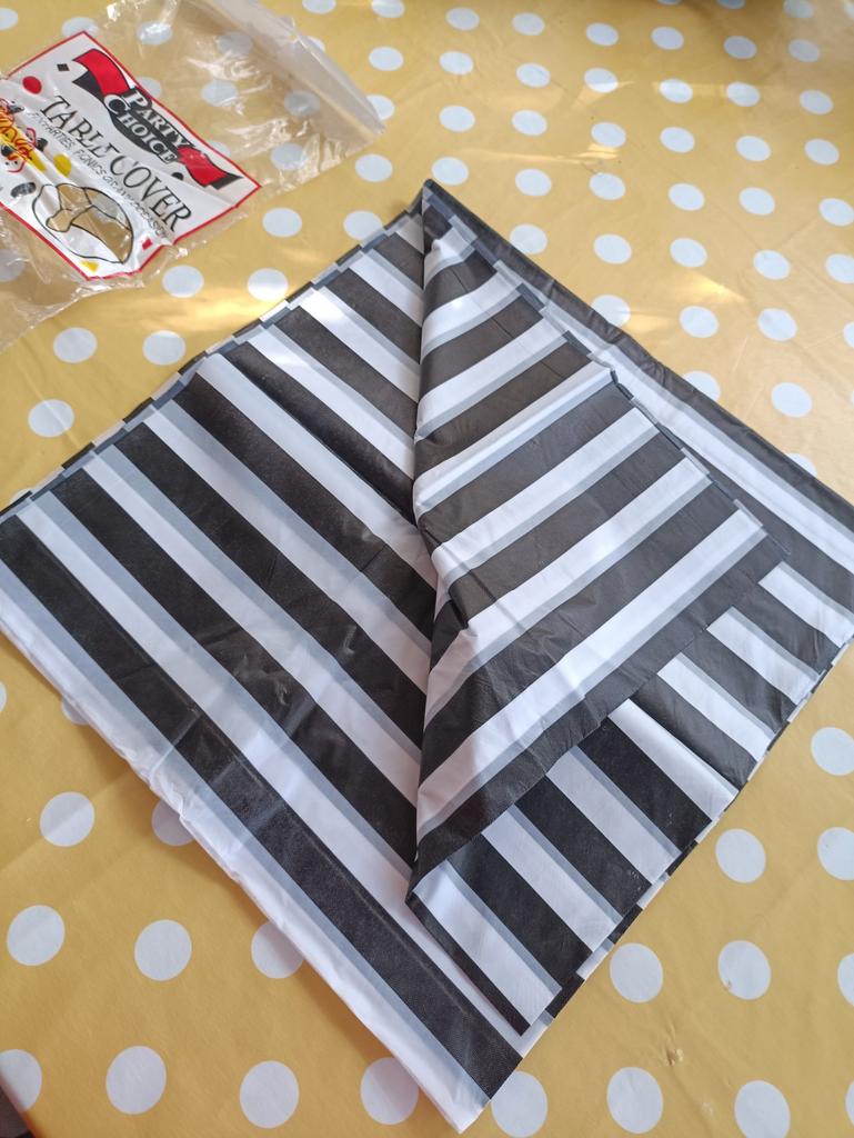 Thin tablecloth. Disposable. Not very wear-resistant. But I like the pattern. They will simply cover something with it, so that some object does not get dusty.