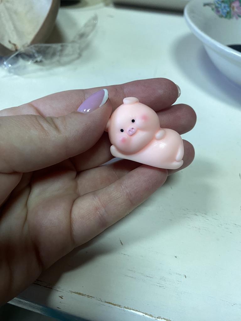 Very cute pig ๐ I thought it was a soft anti-stress material, but it's a tough material, keep in mind. Nevertheless, I am satisfied.nl Now I want to order other figurines to build a collection ๐ Thanks to the seller and Joom ๐ฅฐ