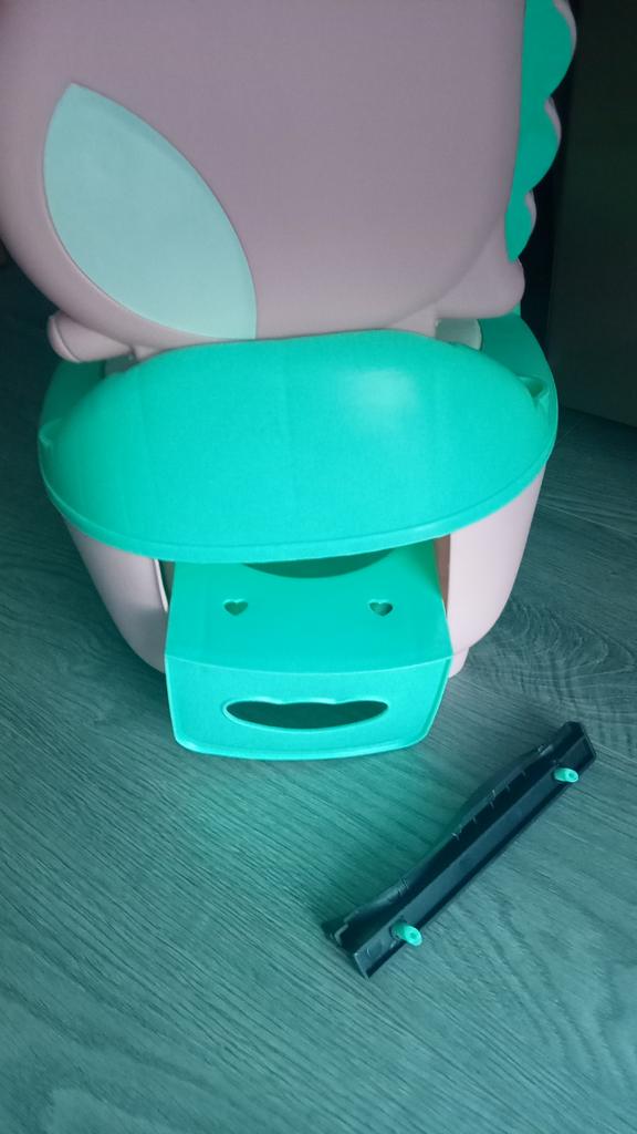 The potty is damaged, the guide to the drawer is broken. I was waiting for the shipment with my granddaughter. The child was inconsolable. I am surprised that the company sends damaged items for children. The potty is not suitable for use.