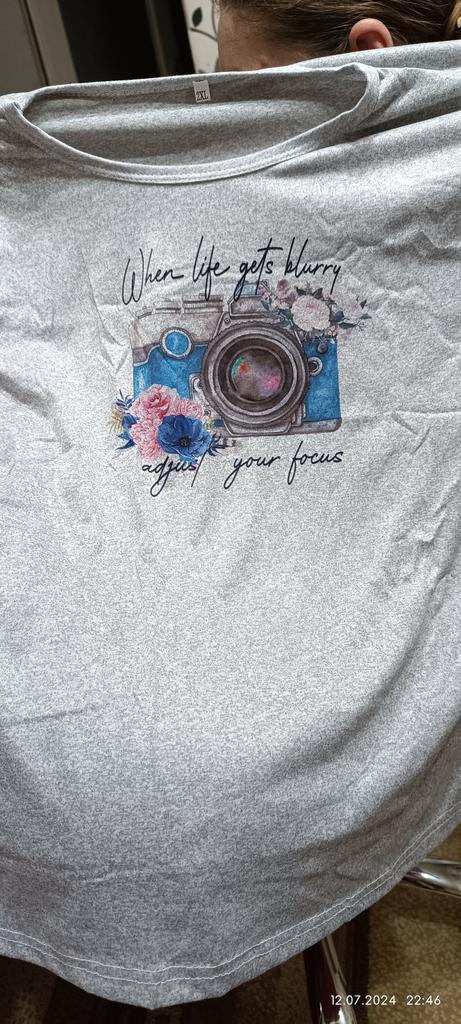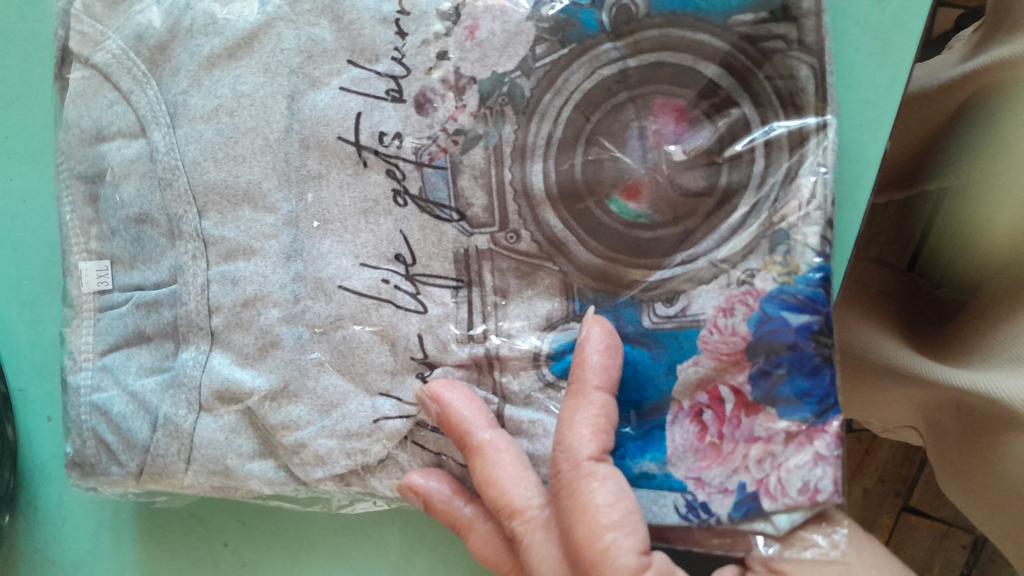 The T-shirt is clean (already pleasing) without holes, as in the photo! The print is clear! But I thought it would be less synthetic...
