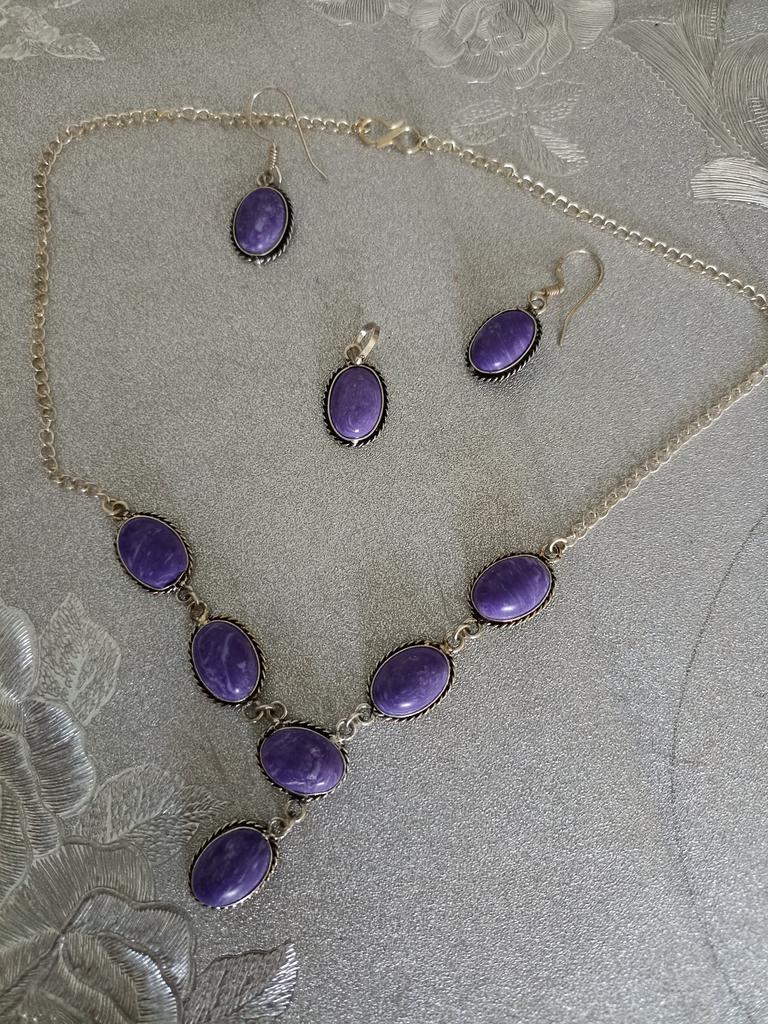 Charoite Gemstone 925 Sterling Silver Plated BeautifulNecklace ERR-N35