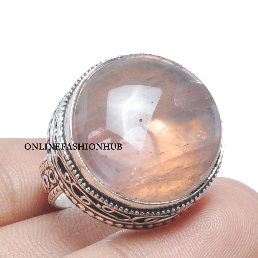 Vintage Rose Quartz Gemstone 925 Sterling Silver Plated Ring VRI-R55