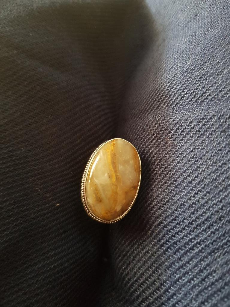 Vintage Yellow Moss Agate Gemstone 925 Sterling Silver Plated Ring VRI-R84