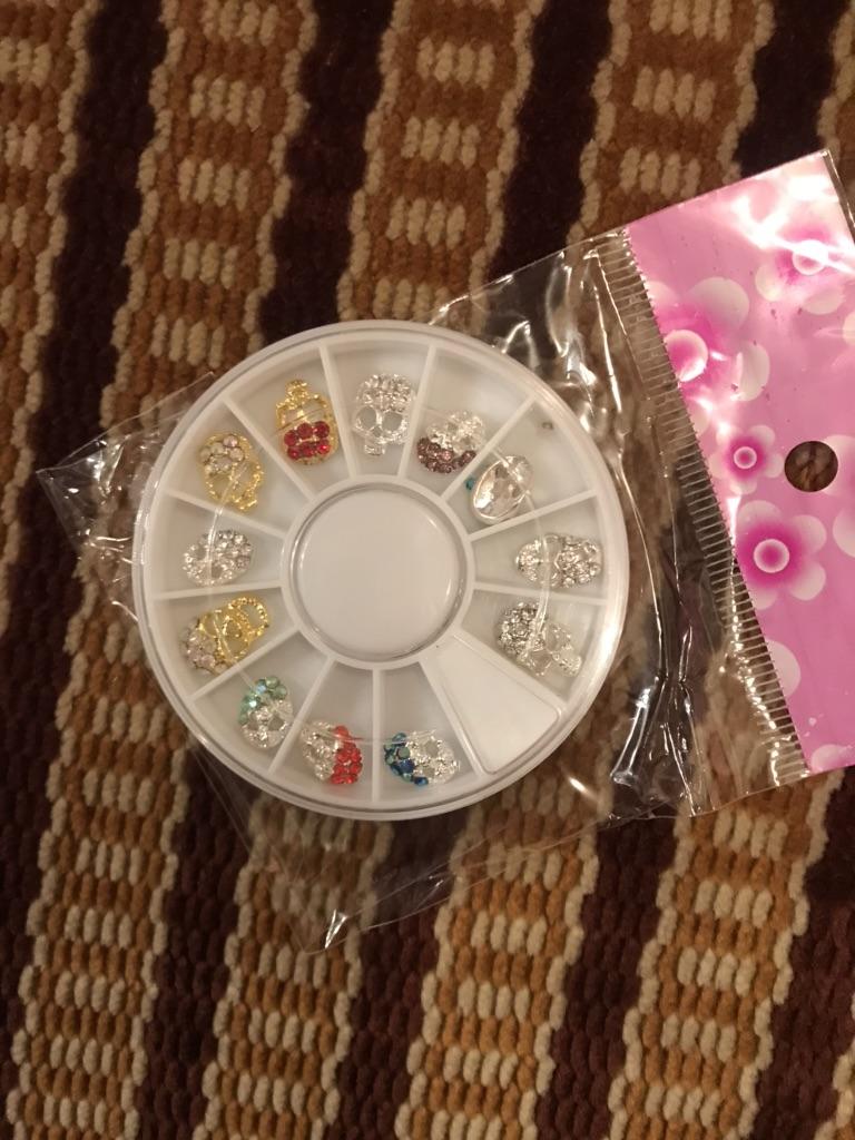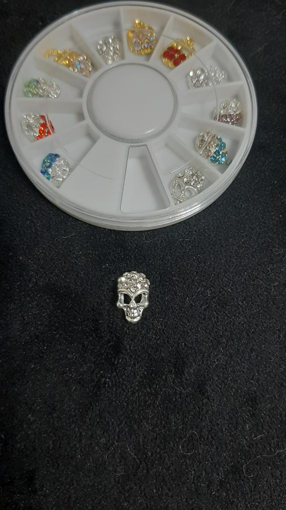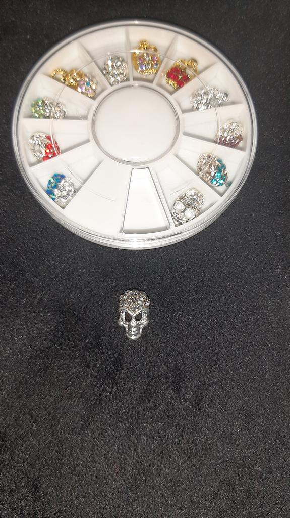 12Pcs/wheel Skull Alloy Nail Jewelry Rhinestone Nail Art Decoration