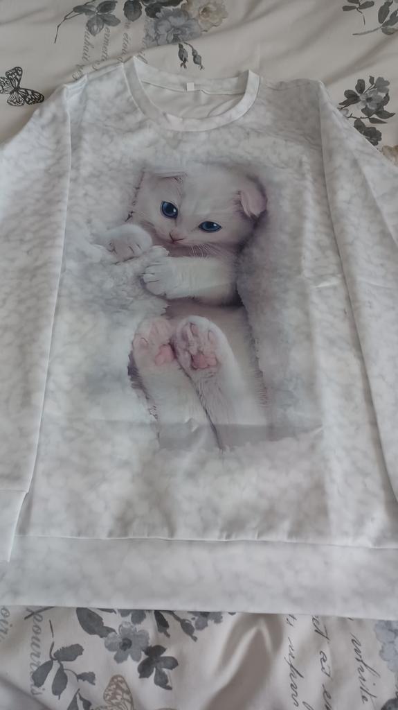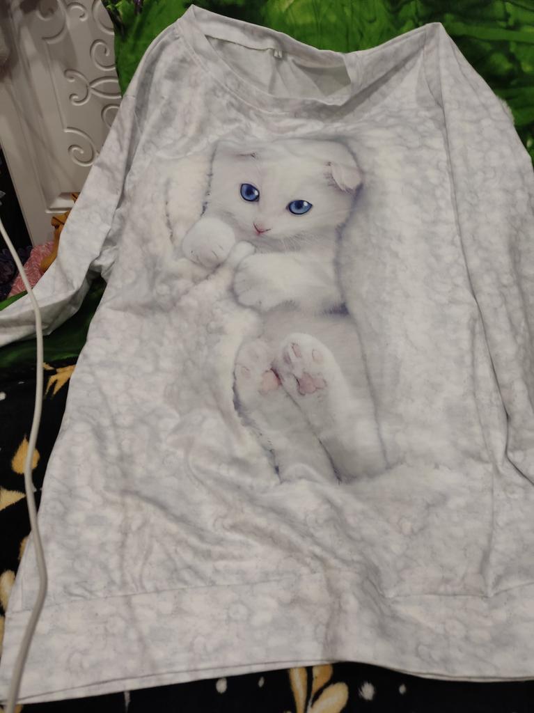 I expected a little more, but what arrived was an ordinary knitted T-shirt with long sleeves and a regular print. Looks different in the photo.