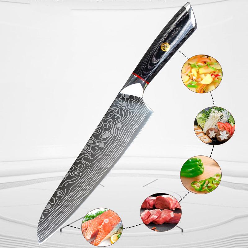 German Steel Damascus Pattern Chef's Knife Slicing Knife Sashimi Knife Stainless Steel Kitchen Knife Wooden Handle Knife