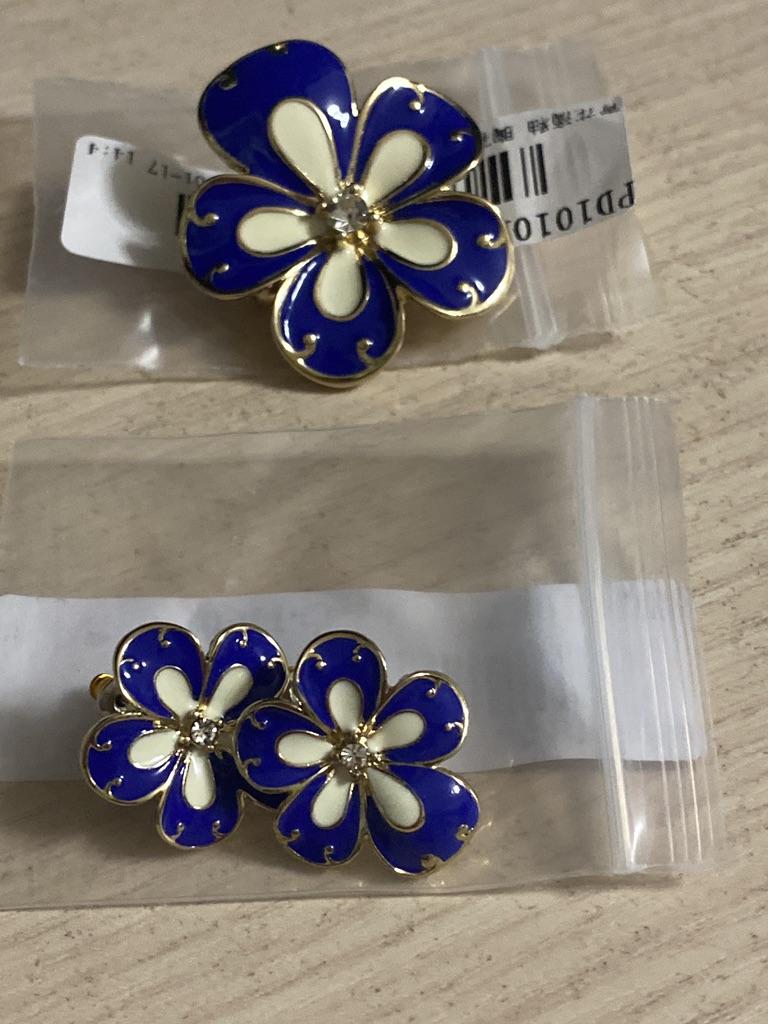 Pinkdudu New French Vintage Court Blue Flower Enamel Brooch 925 Silver Needle Stud Earrings for Women Jewelry PD1010
