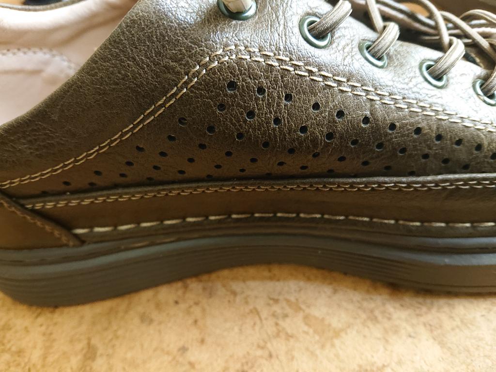 For size 42, 44 fit well. There are also doubts about the natural leather, but I'm not a specialist. The sole is thin, you feel the pebbles. In the rain, the feet get wet.