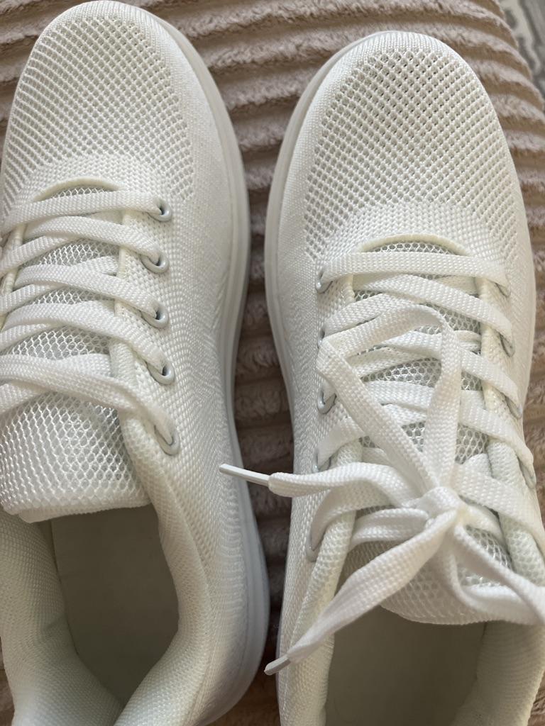 Very pretty white fabric sneakers ideal for spring. 👍💝 They are very light and comfortable and perfect for walking. 🌺💙 It is best to order the larger size to be safe. 🫣😇