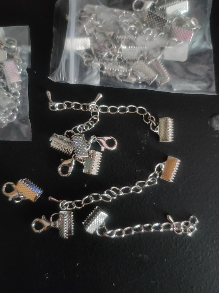 10pcs/lot Ribbon Leather Cord End Fastener Clasps With Chains Lobster Clasps Connectors For Bracelet Diy Jewelry Making Findings