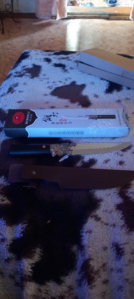 The knife is beautiful and sharp. There is damage to the paintwork on the handle.