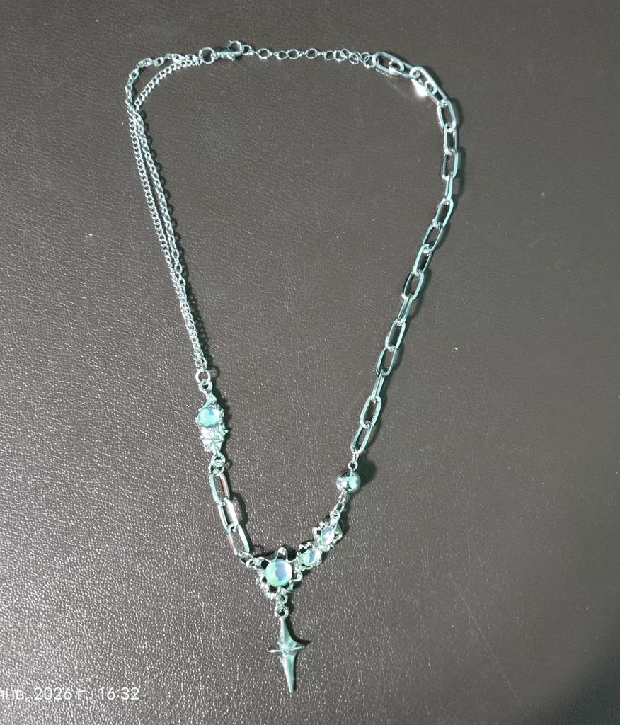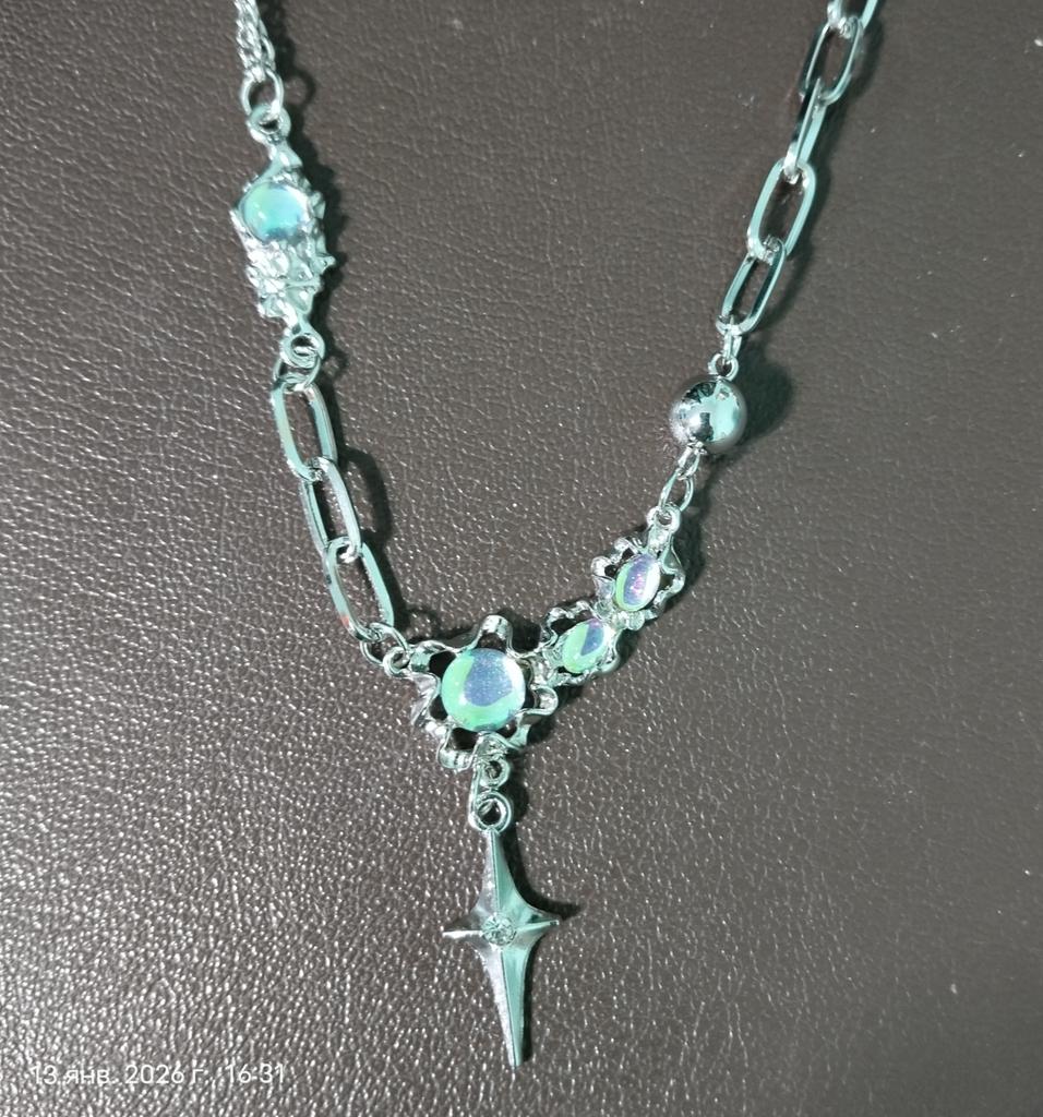Crystal Opal Pendant Liquid Metal Necklace for Women Clavicle Chain Geometric Irregular Vintage Choker Y2K Jewelry Accessories
