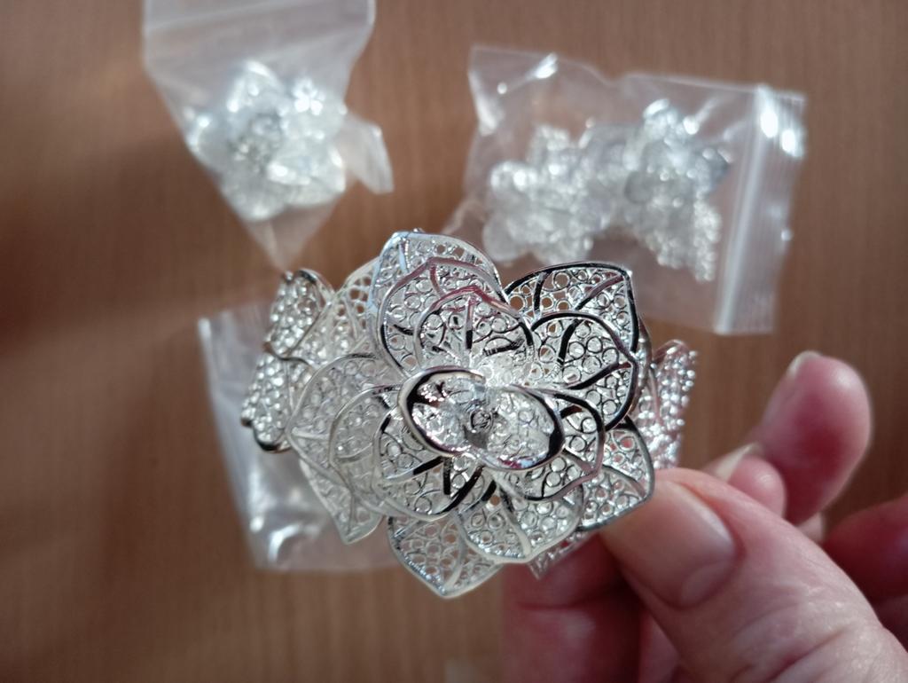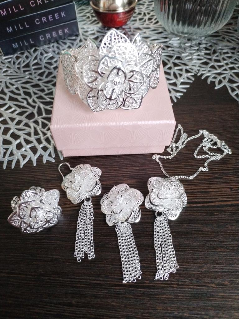 Very beautiful, the design is gorgeous, but I'm afraid it's not silver, it doesn't say 925 silver on the earrings but I don't have allergies, it's definitely not silver either😔💔