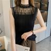 Summer Sleeveless Knit Blouses Women Casual Lace Slim Ice Silk Shirt Women Fashion Stand Solid Lady Tops Vest 25379