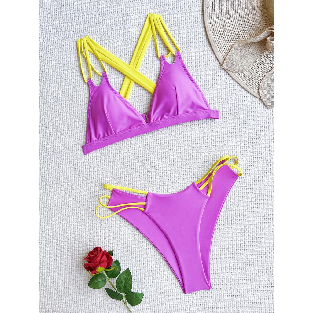 New Sexy Strappy Cross Back High Cut Bikini Female Swimsuit Women Swimwear Two-pieces Bikini Set Bather Bathing Suit Swim