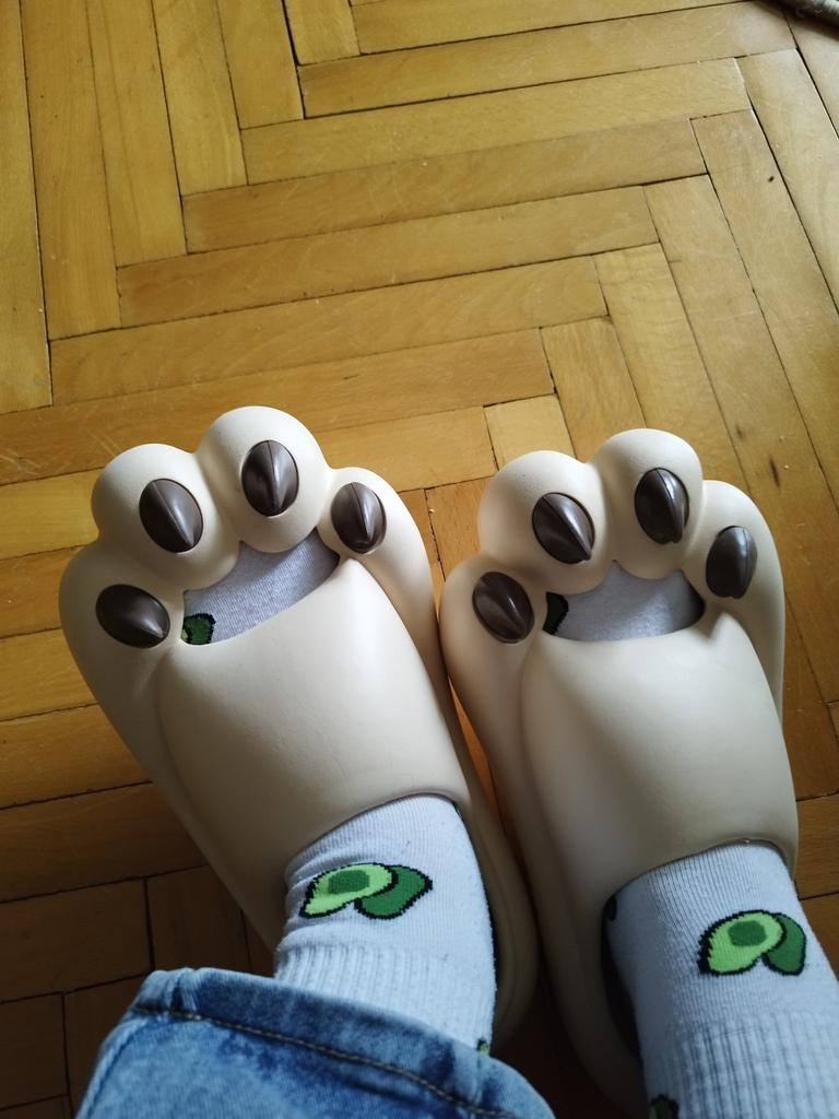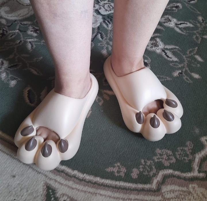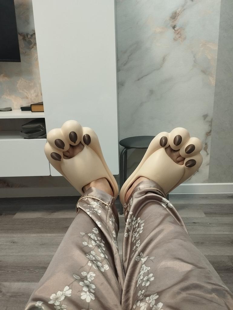 ✔️Slippers-funny😄😄😄 ✔️Such paws-scratches ✔️ Well made ✔️Very voluminous ✔️Size 38-39 inside 25 cm. In the video she mistakenly said that it was 26 cm. Clearly shown in the video