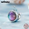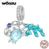 WOSTU 925 Sterling Silver Seashell Charms Submarine Beads Crab And Seaweed Pendan Fit Original Bracelet DIY Jewelry