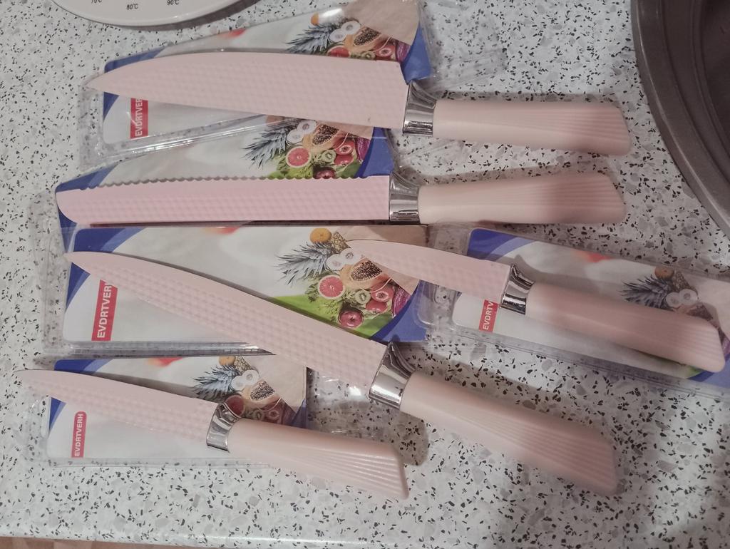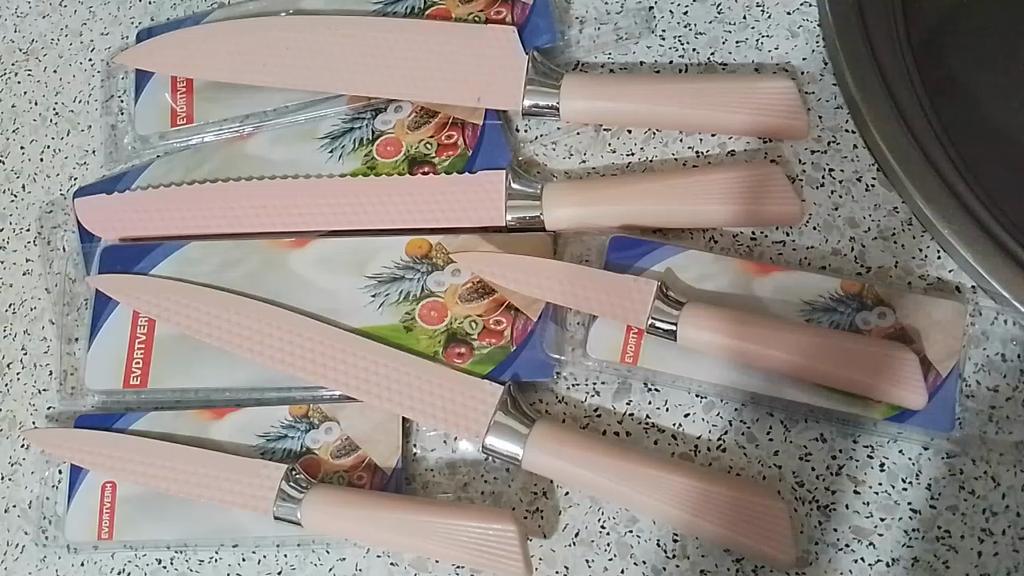 Five-piece Diamond Pattern Fan-shaped Handle Hexagonal Snowflake Kitchen Multifunctional Knife Set