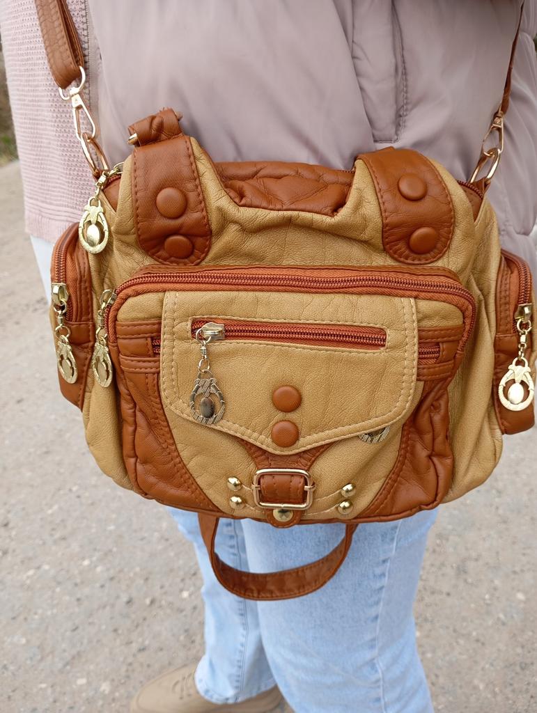 The handbag is very pleasant in terms of material quality and size. Many functional pockets and 2 large compartments allow you to distribute things according to their purpose.