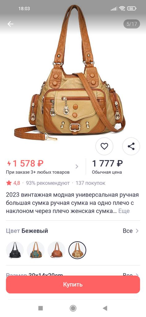 Thanks to the sellers. The bag is very cute, soft, lots of pockets. I recommend it for purchase. The size is small, like a handbag.