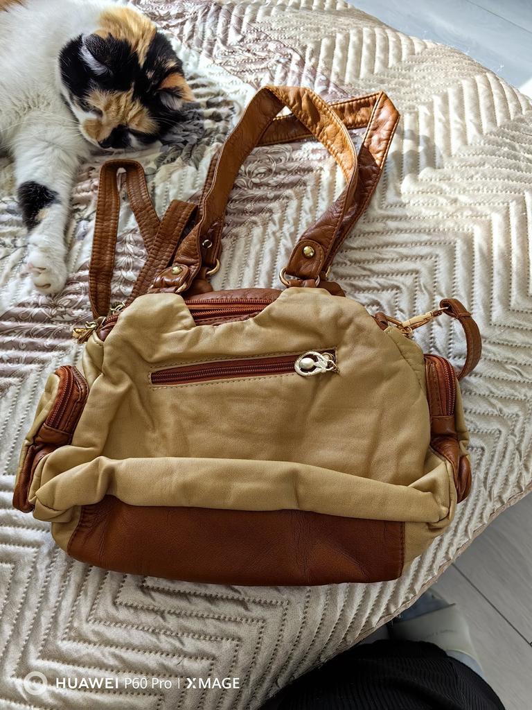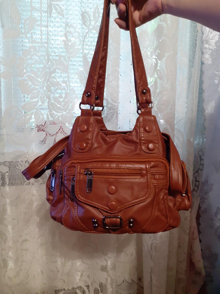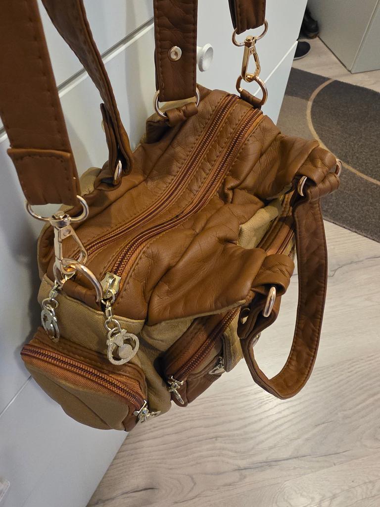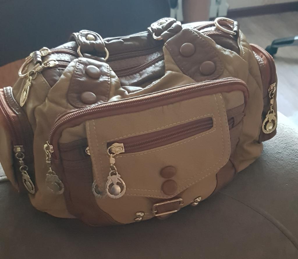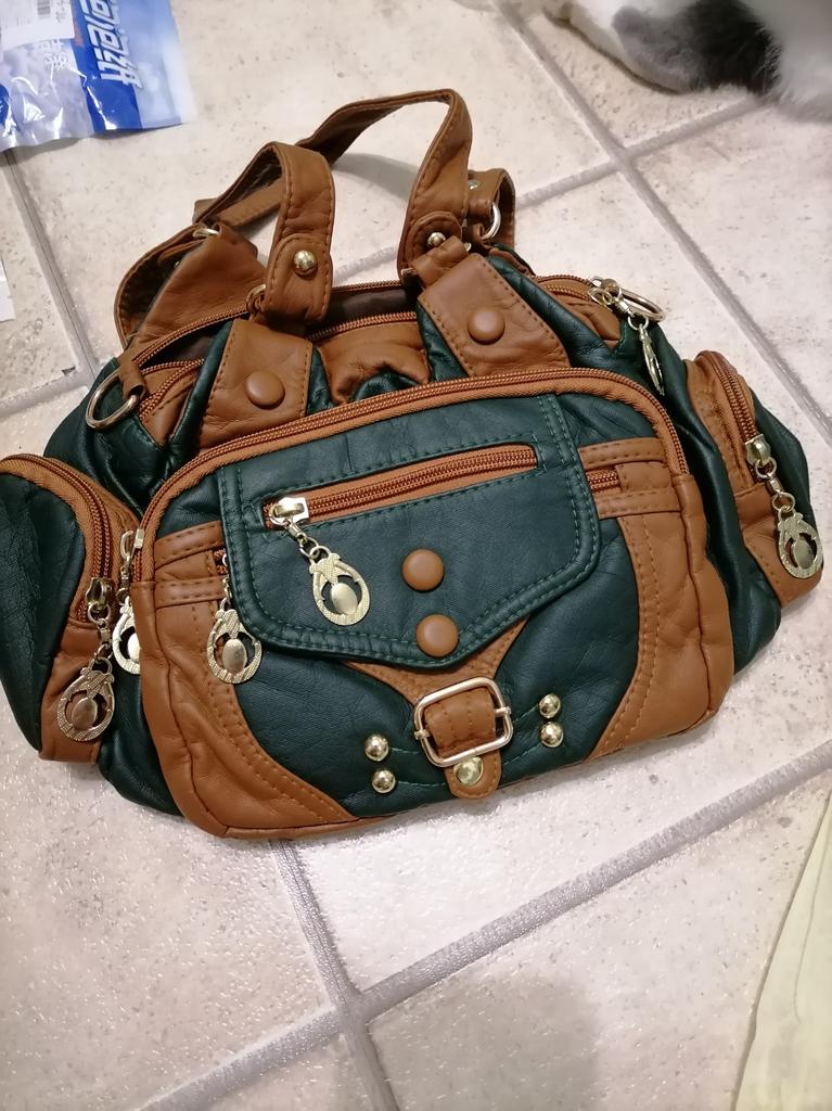 I was very pleased with the bag. The leather-look material is soft, there are a lot of pockets, just as I wanted, and the two compartments are also roomy. The handles are comfortable, plus the shoulder strap is adjustable, it can be longer or shorter.
