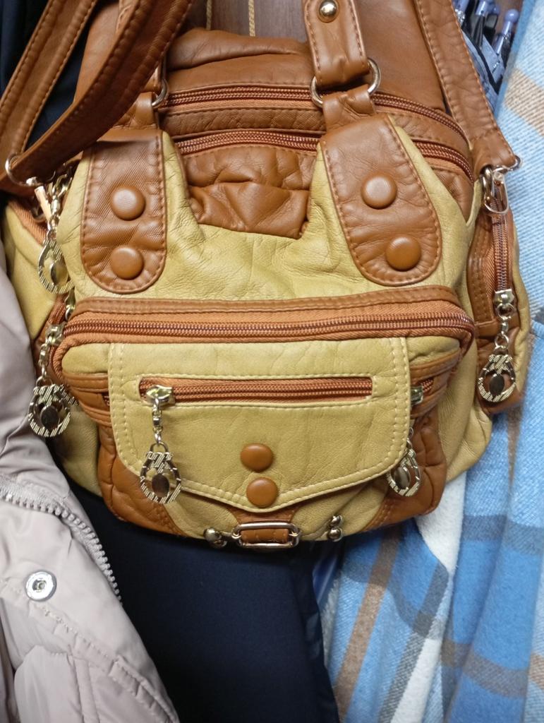 The bag is wonderful. It arrived neatly packaged. All the zippers are working, there are no scratches.. Everything is exactly as in the photo. A million pockets) Thanks a lot!)