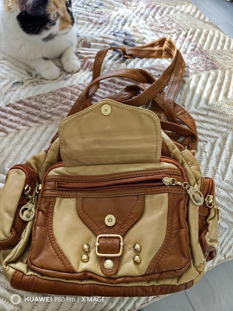 I received the bag, I'm happy, the leather is soft, 2 internal compartments with a lock, and 6 on the outside. I would like the bag to be a little bigger, it's small, but it's not critical