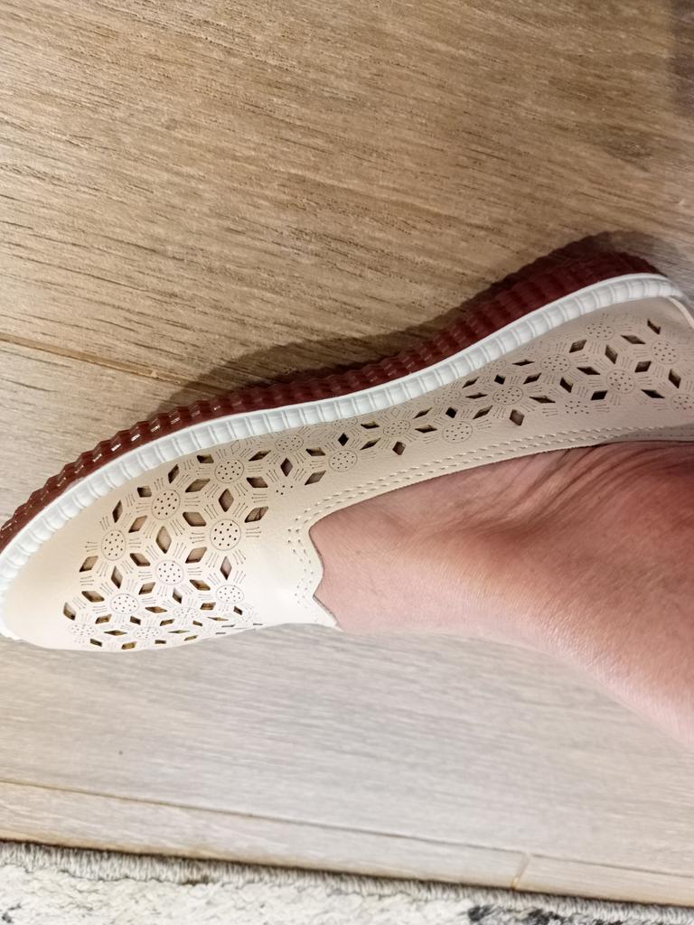 A bit rough, arrived crumpled. Slightly narrow for a medium-width foot. I took a 38 for my size 37, it's not very comfortable, a little looser would be better.