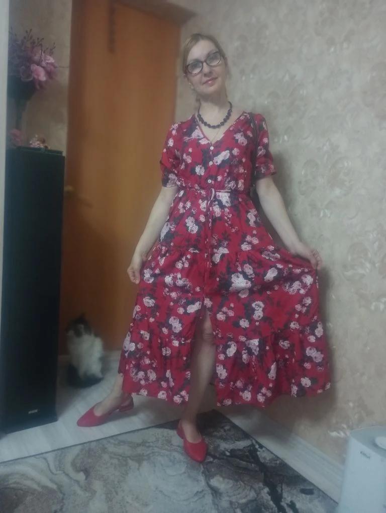 * airy maxi dress* 💥𝗟𝗶𝗲𝗳𝗲𝗿𝘇𝗲𝗶𝘁 18 days 💥𝗟𝗶𝗲𝗳𝗲𝗿𝘂𝗺𝗳𝗮𝗻𝗴 The delivery includes 1 dress in the corresponding color and size. The dress is available in 1 color in sizes S to XL. I ordered the dress in size S in red. I wear size 36 to 38. I weigh 63 kg over 172 cm. Cup size 75D. The dress fits me quite well, but it's a little too tight in the upper arms. But length is great 👍 💥𝗤𝘂𝗮𝗹𝗶𝘁ä𝘁 The dress is opaque... I think that's good and important. It is also very stretchy in the waist and arm areas. Dress flows beautifully with you as you walk and it boldly has a slit in the front. Doesn't smell like chemicals. For material composition : 100% Polyester Comes with a small belt of the same color to accentuate the waist. 💥𝗙𝗮𝘇𝗶𝘁 Great cut dress that you can order in your right size. It's a pity that it's a bit tight on the arms.