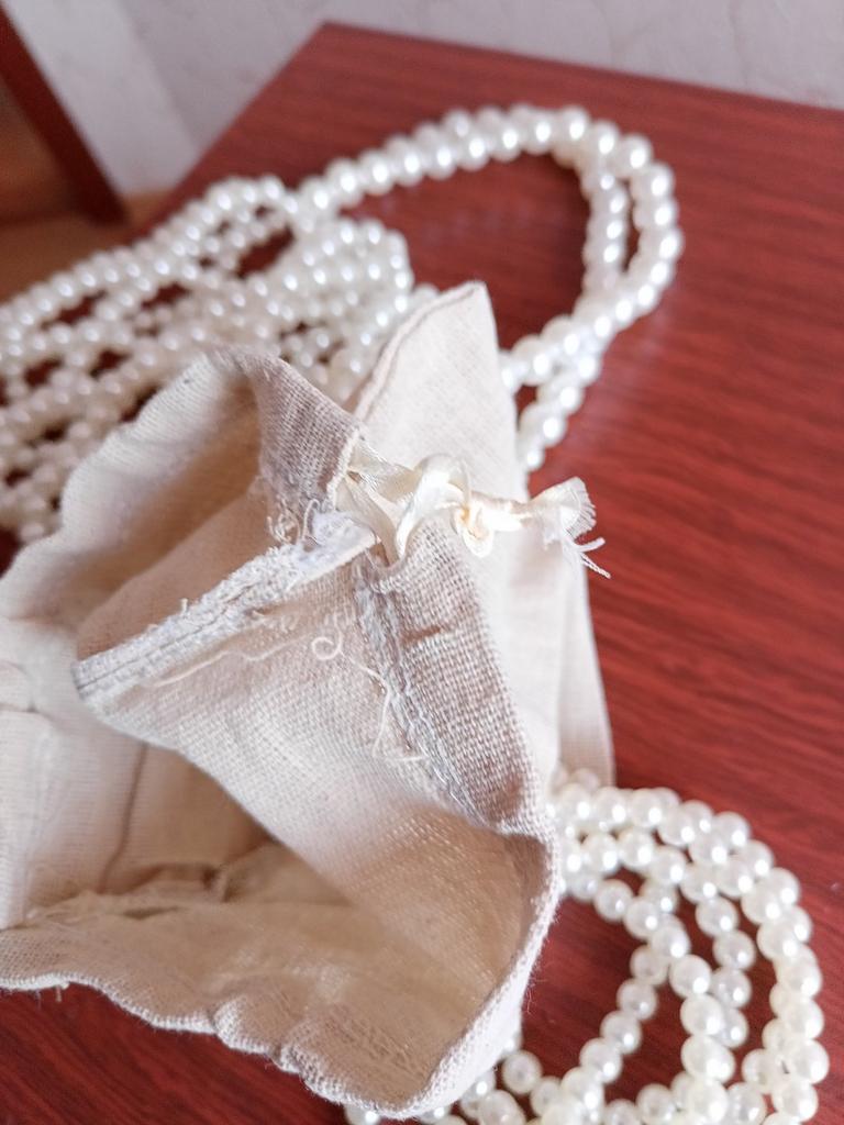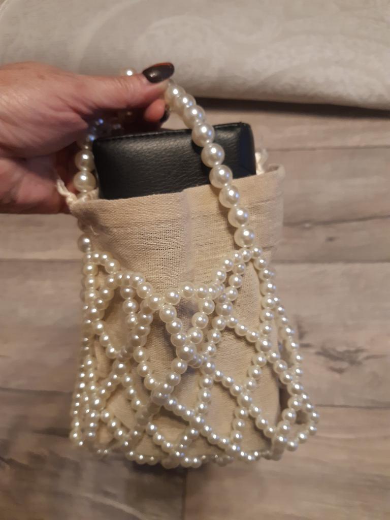 The bag is not white but linen, it looks cheap)
