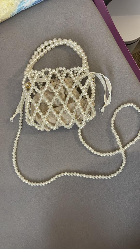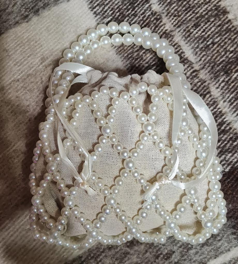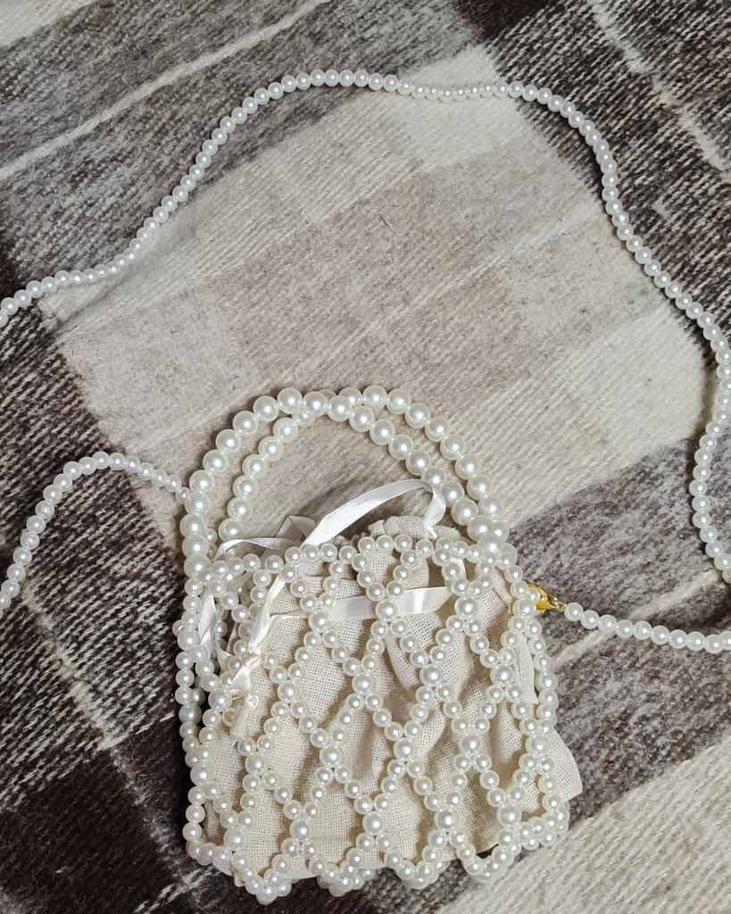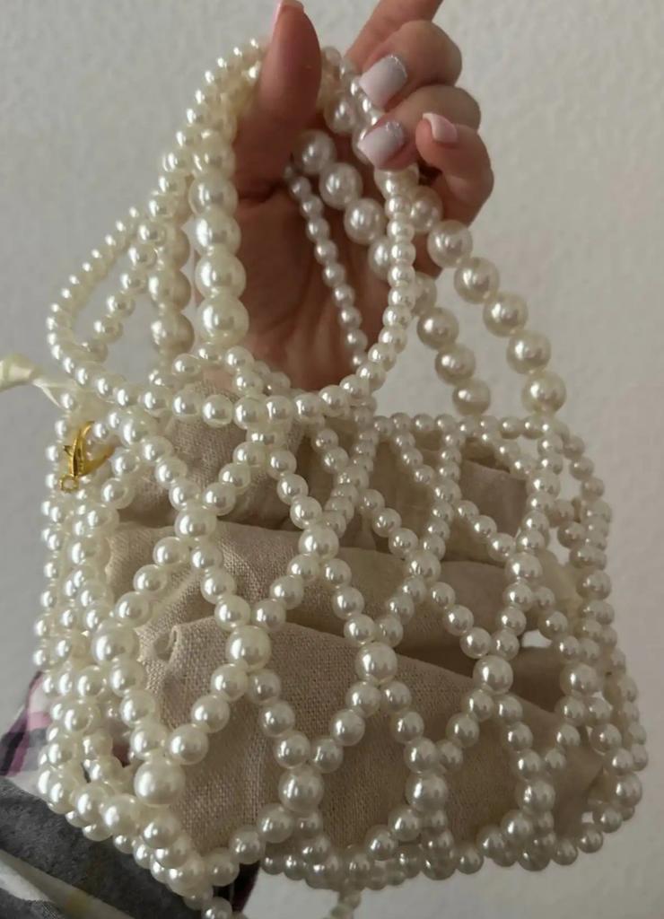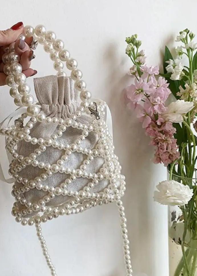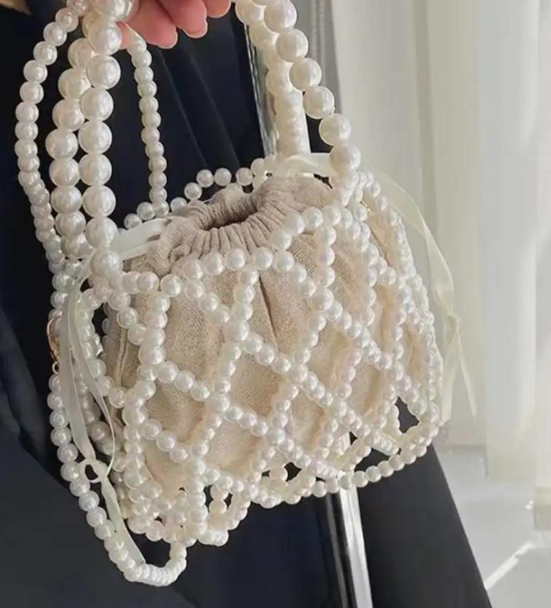 Yogodlns French Retro Handbag Fairy Woven Beaded Bucket Bag Crossbody Bag Summer Niche Design Hollowed Out Pearl Bag