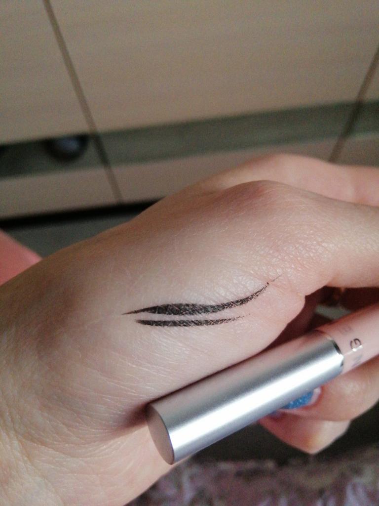 Thin eyeliner, holds well.
