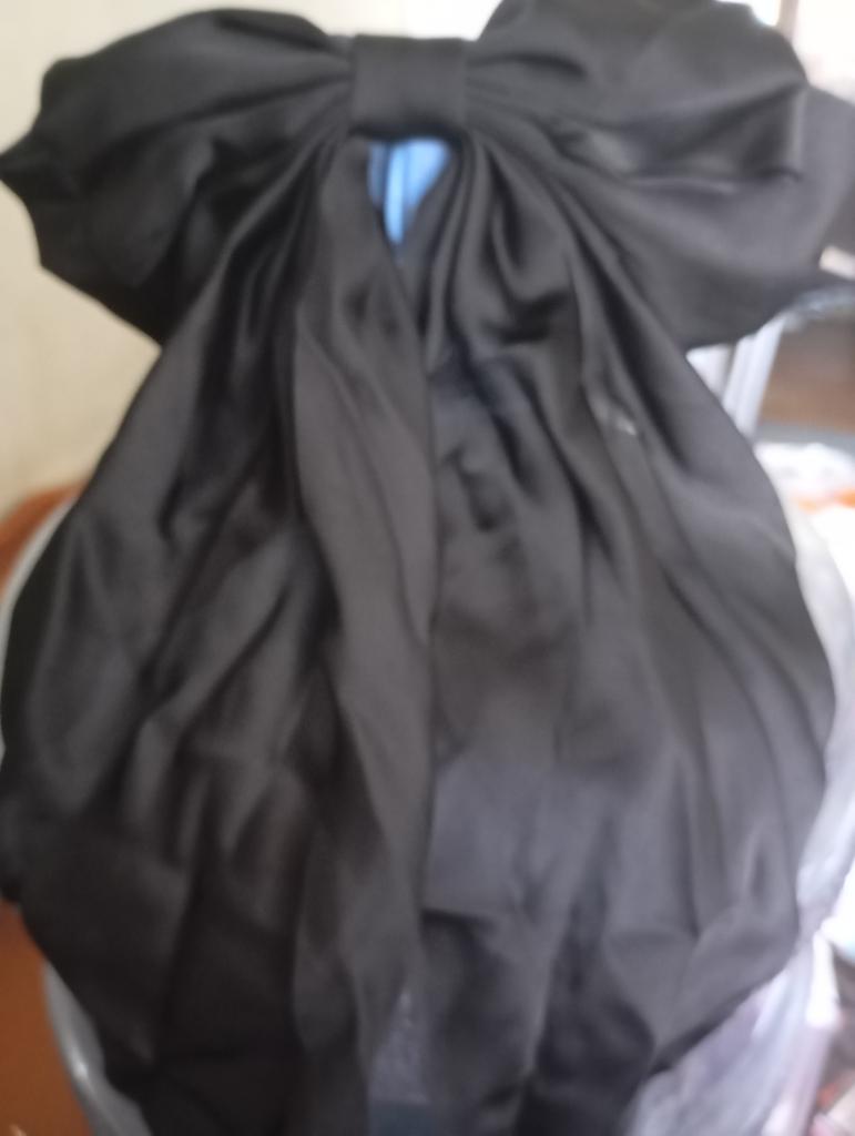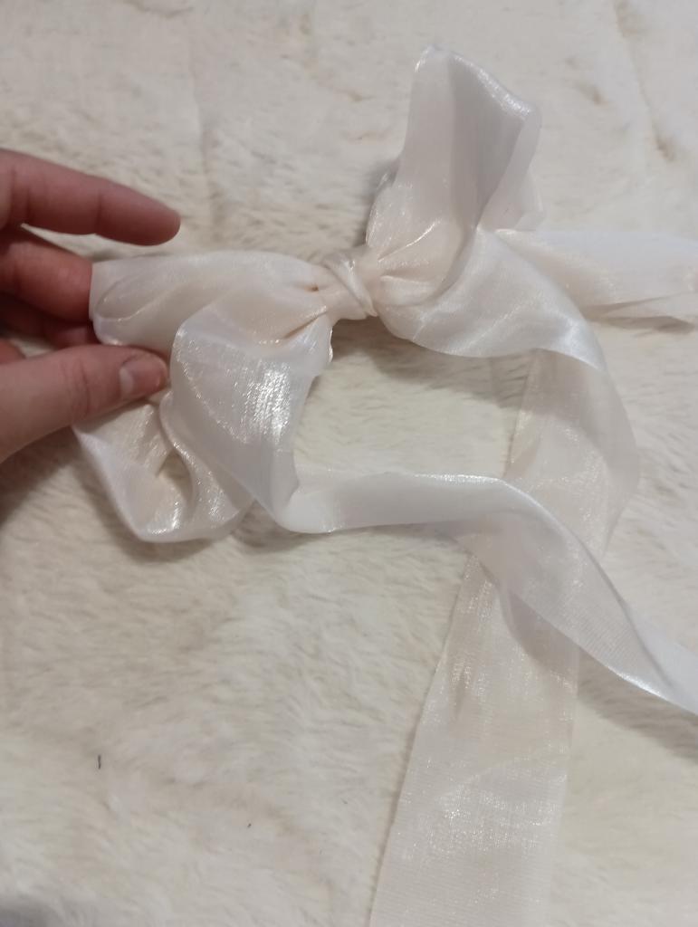 The bow is beautiful, I ironed it and it's ready. It is pinned to the hair with an automatic hair clip.