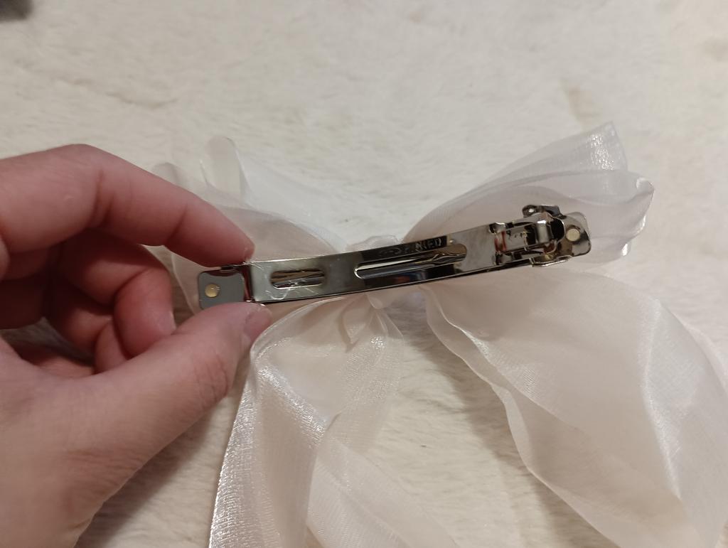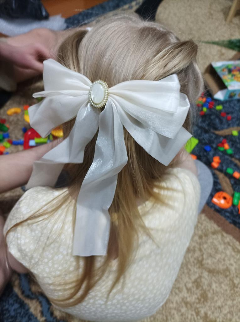 I liked the bow. Beautiful, a little crumpled, there are threads that come out. But the biggest minus is that the fastener does not close well, it opens even when it is in the hair.