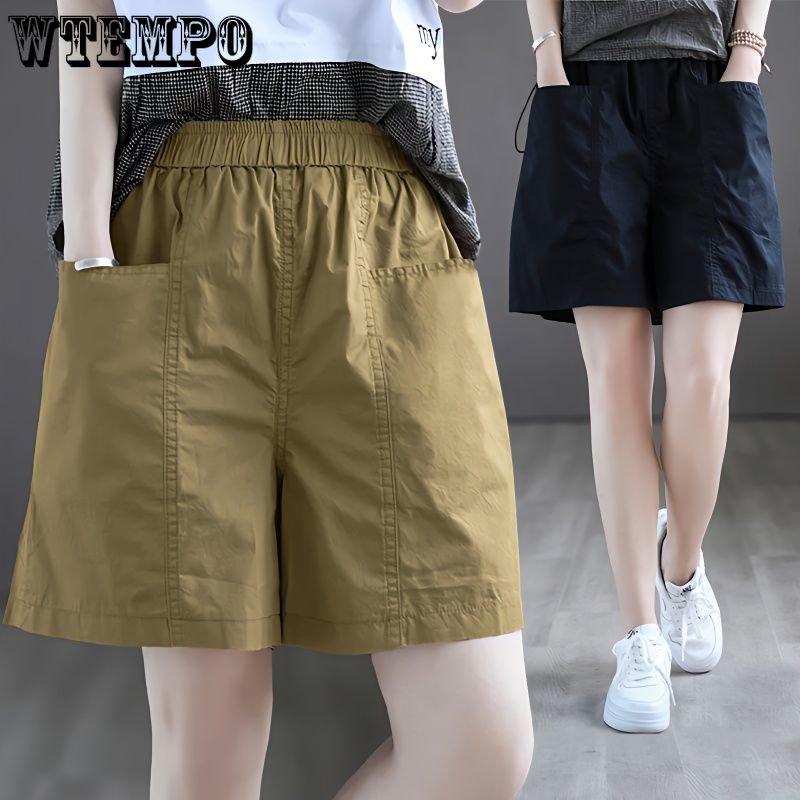 100% Cotton Short Pants Women's Summer Outside Wear High Waist Cover Thighs Show Thin Loose Five Points Casual Wide Leg Pants