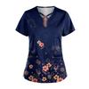 Women's Fashion V Neck Cross Retro Printed Uniform With Pocket T-Shirt Short Sleeve Top