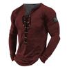 Men's Outdoor Vintage Lace-up Hooded Long-sleeved T-shirt Autumn Plain Casual Top