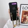 Fashion Diy Bow -Knot Long Chain Shoulder Strap Cases For Samsung Galaxy Z Flip 1 2 Zflip2 1 5g Hard Pc Lanyard Crossbody Cover