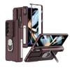 Ebesfous Magnetic Armor Pen Holder Case For Samsung Galaxy Z Fold 4 5g Magnetic Hinged Cases With Front Glass 2 Bracket Lens Cap