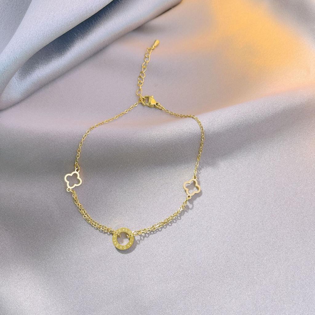 Titanium Steel Hollowed Out Four Leaf Clover Ankle Chain, Spring and Summer Fashionable Footwear, the Best Gift for Girls