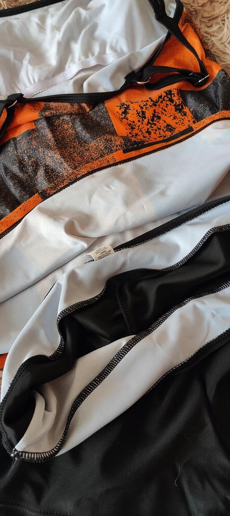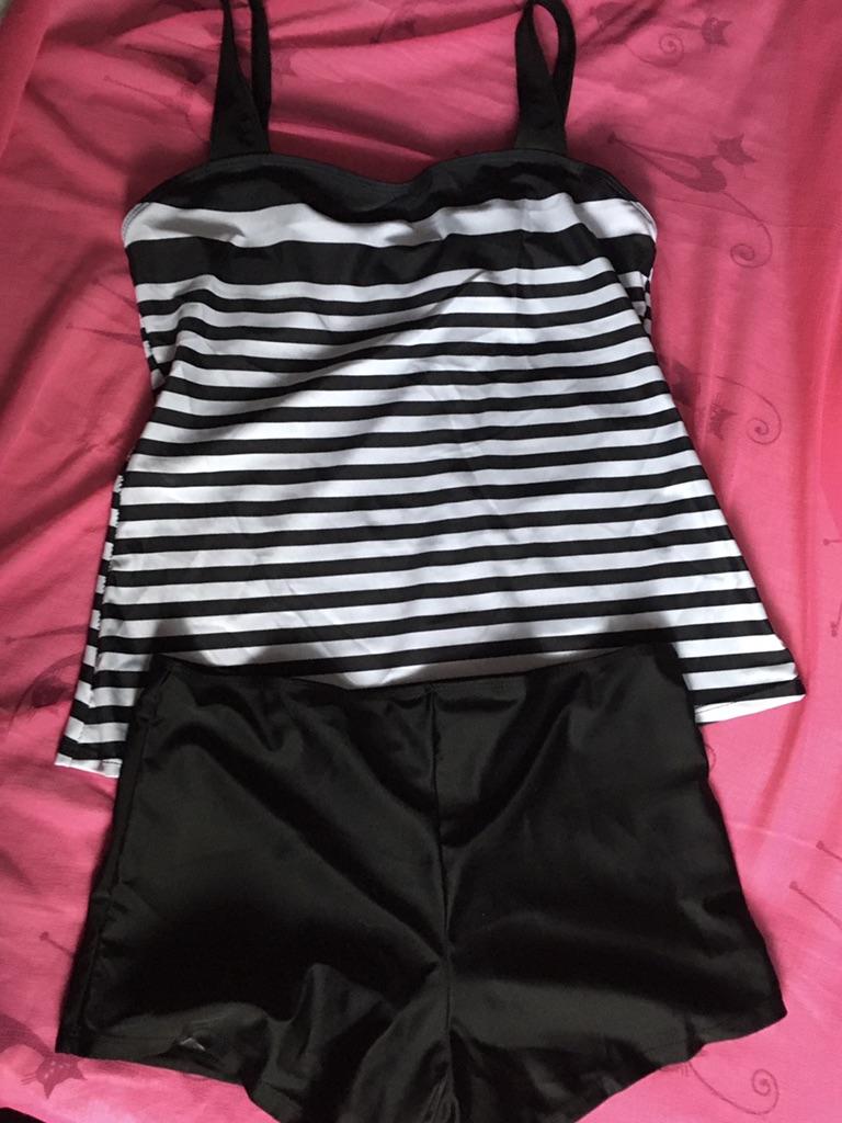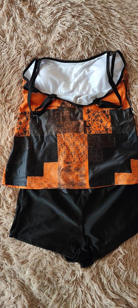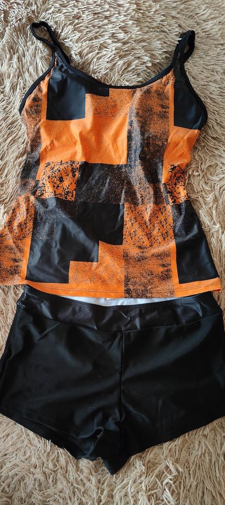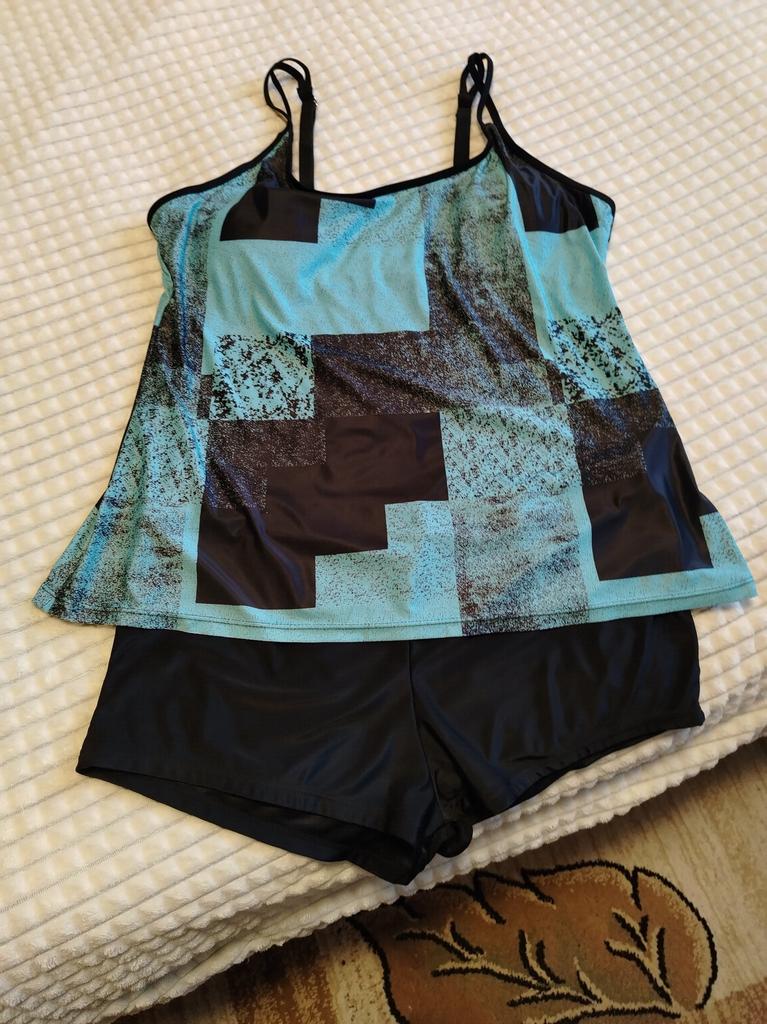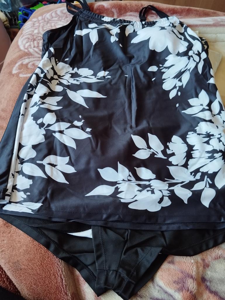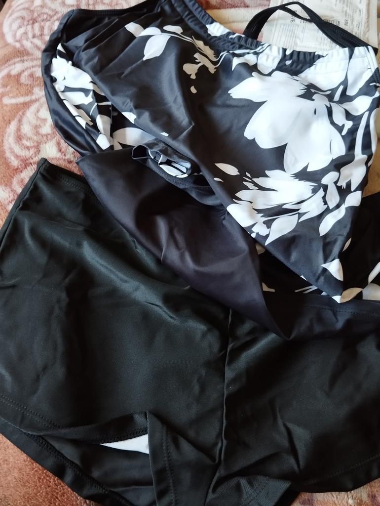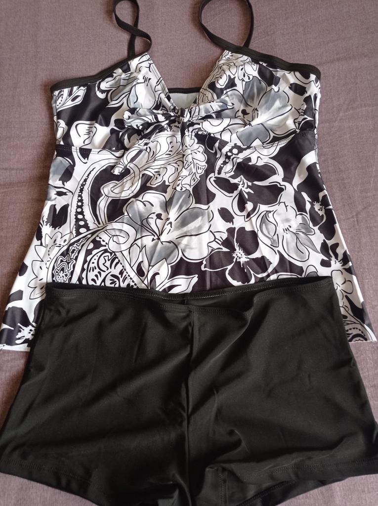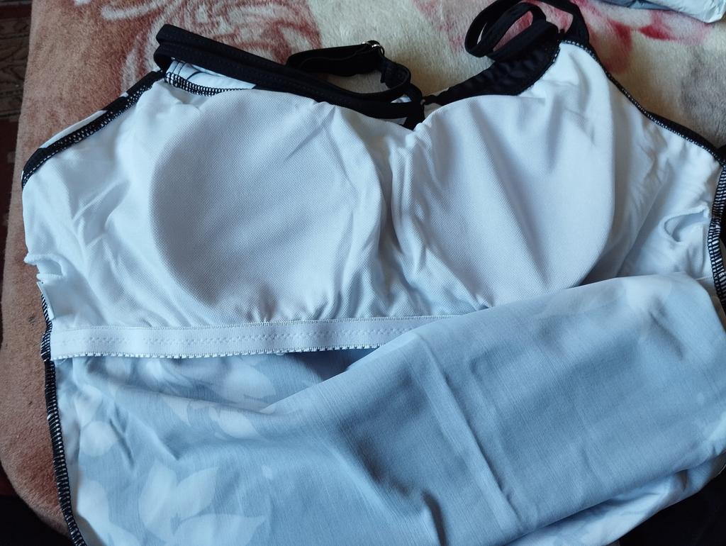 The tankini is not like in the photo. The photo shows panties with long legs. But I got a pair of swim briefs. Top is a bit tight and the straps unfortunately cannot be adjusted further. I'll keep it anyway, but unfortunately it's not really top quality.