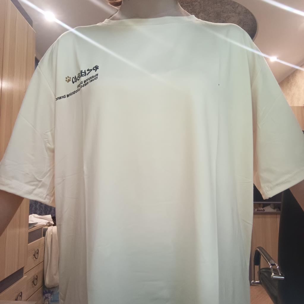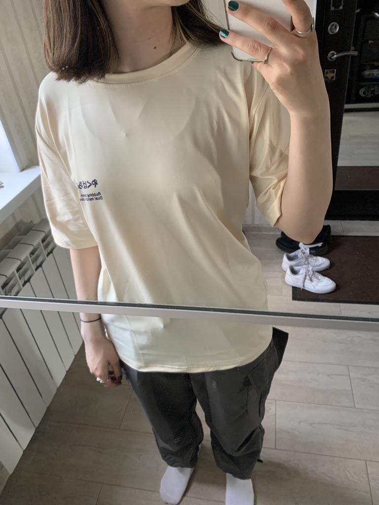 It’s just white, I thought it would come in a milky color, the fabric is very pleasant to the touch and it’s quite long, I’m 165cm, the T-shirt is just above the knee