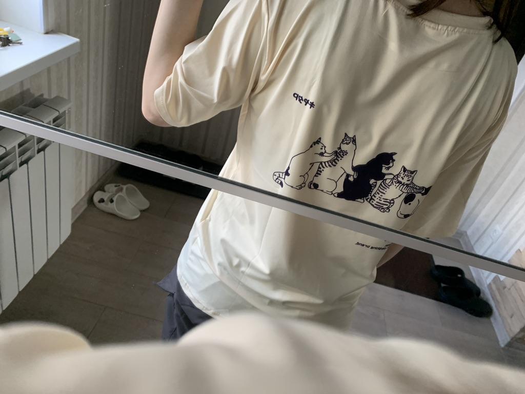 Summer Small Fresh Short Sleeved T Shirt Men and Women Couple Tide Brand Retro Cartoon Cat Printing Half Sleeve T Shirt